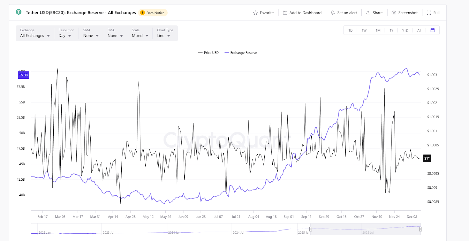 根据CryptoQuant的数据显示,USDT的交易所稳定币储备在今年来一直处于上涨趋势,在最近仍然保持了这个势头。12月4日,USDT在交易所的储备量达到了历史高峰,604亿美元。并且在目前仍维持在600亿美元的高点。作为市场内非合规交易所的主要定价标的,USDT的交易所储备持续增长,说明大量的投机资本仍在保持下注或预备抄底的状态。结合当前的持仓量下降,能够感受到大量的投机资本正处于观望的状态当中。
