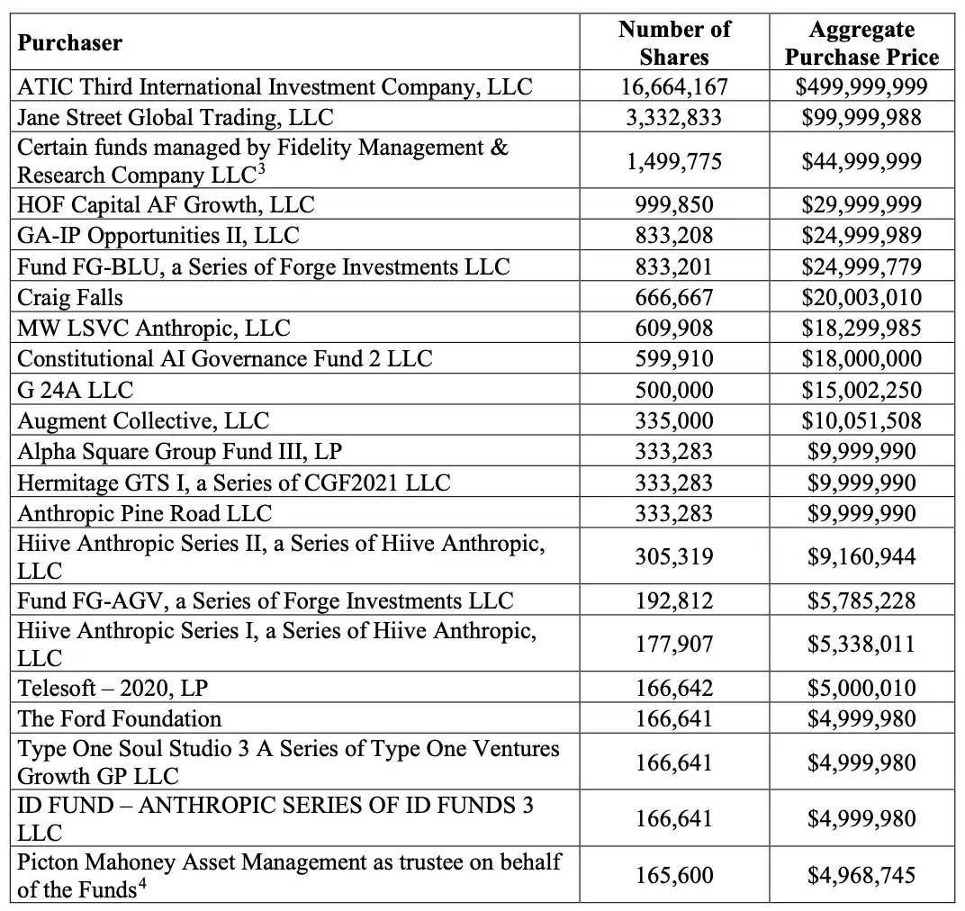 至於這些股權的買方,主要是來自阿布扎比的 ATIC Third International Investment,以及來自華爾街的 Jane Street、Fidelity 等傳統金融機構。換句話說,並沒有加密圈企業分到一杯羹。