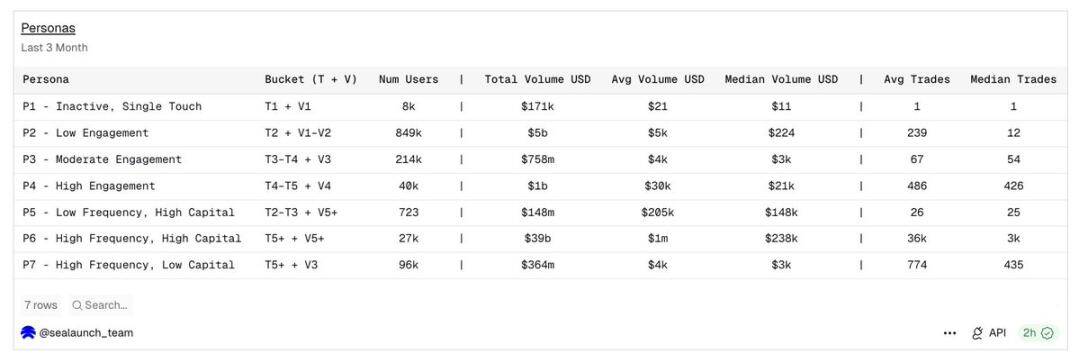 说明:本文全部数据来源于 Dune 数据看板,分析周期覆盖近三个月钱包级全量行为;用户画像依据交易频次分级(T1–T7)与交易金额分级(V1–V7)交叉划定,金额统计单位为美元。