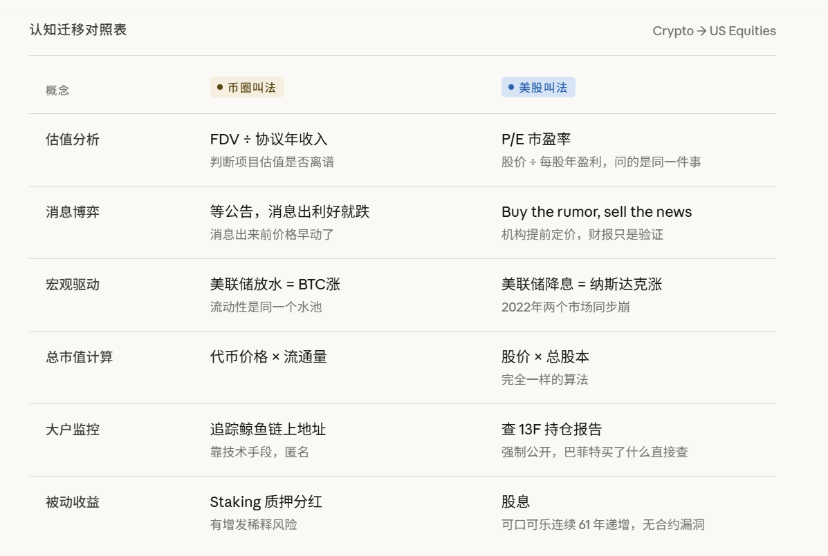 其实 Crypto 用户有一个大多数人没意识到的优势,就是你在链上摸爬滚打的那些年,其实早就在无意识中完成了投资教育里最难的部分,比如如何在信息不完整的情况下做出判断,如何管理高波动资产的仓位心态,如何识别叙事炒作与基本面之间的落差。