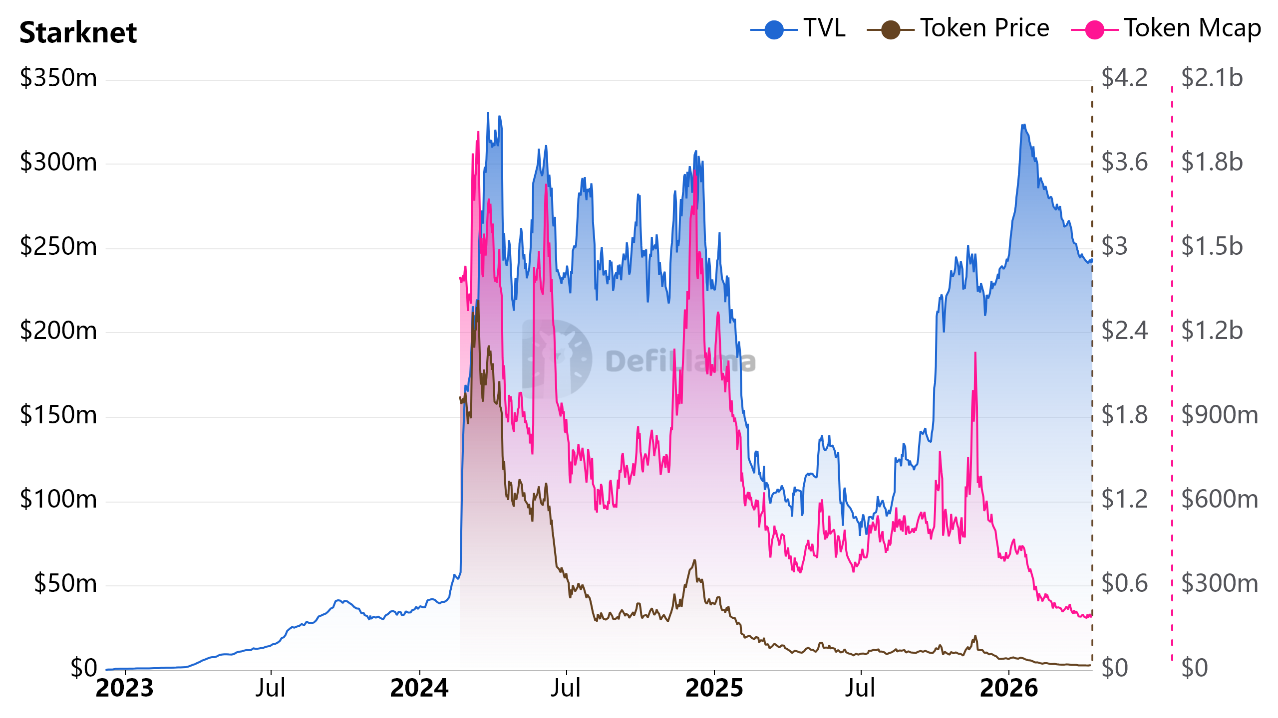 Starknet TVL、STRK Price 及 STRK Mcap
